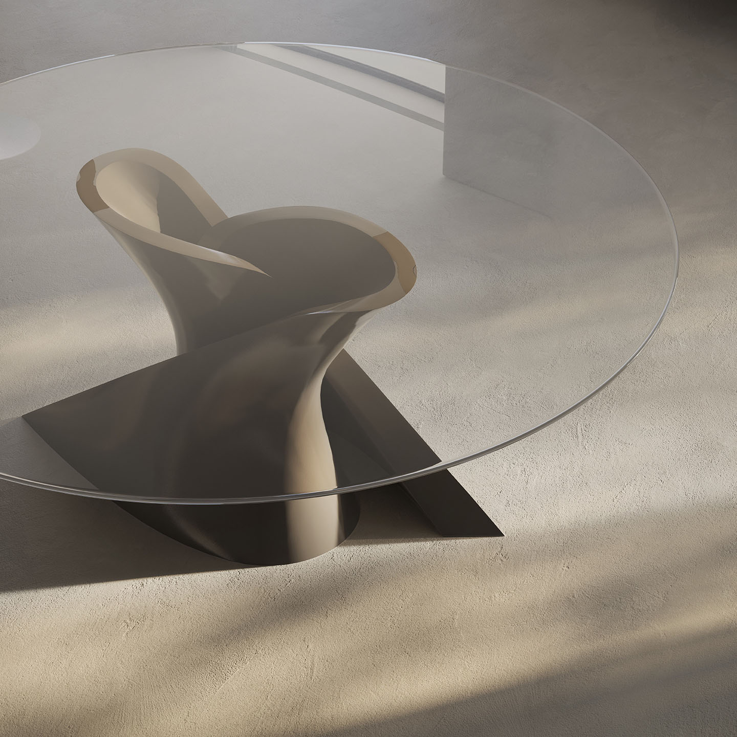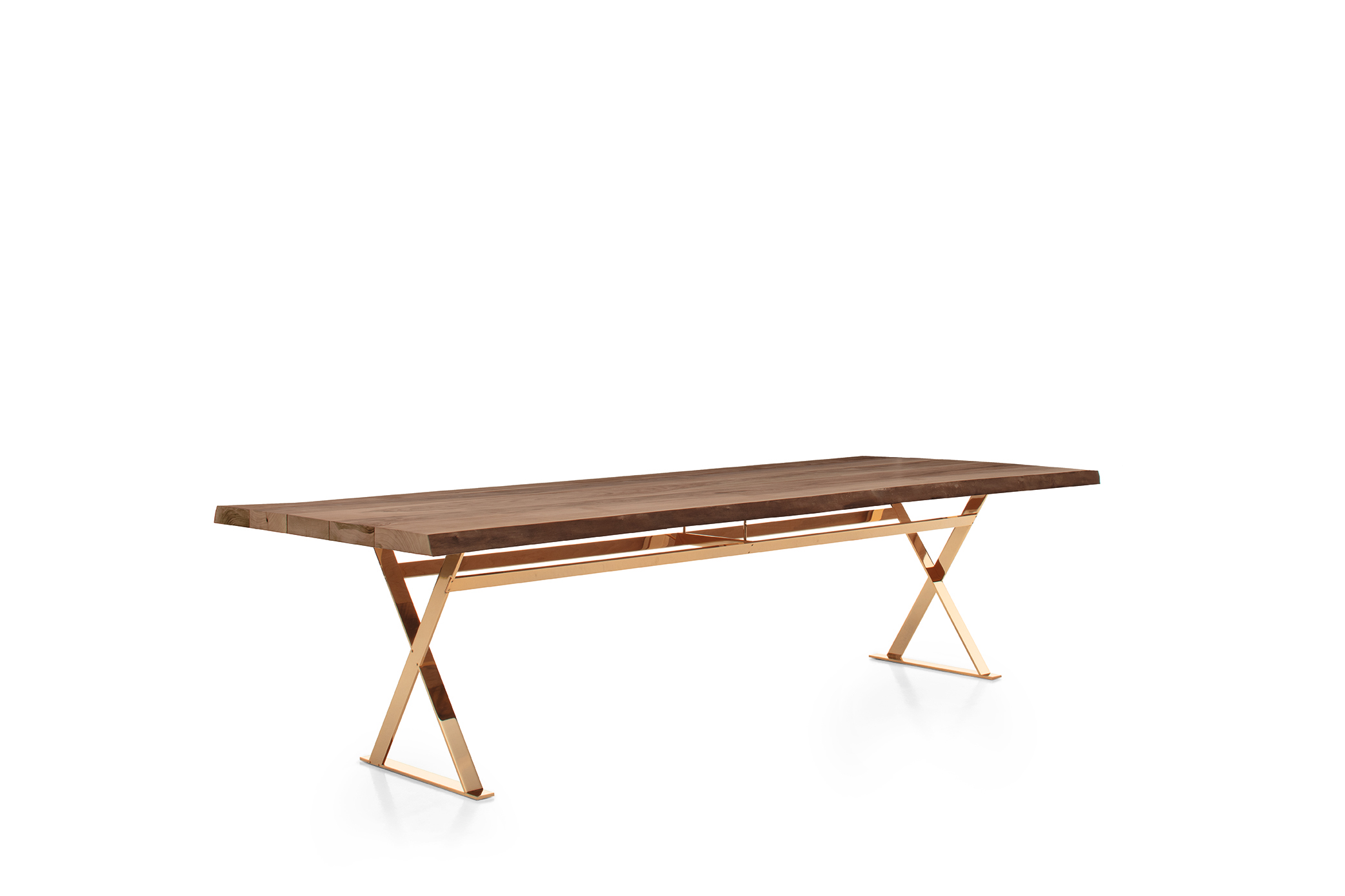創業50周年を迎えたMaxaltoは、オランダ人アーティストのPatrick van Riemsdijkを迎え、彼のアートワークをプリントしたソファ「Lilum」を50台限定で発表しました(画像左)。彼の筆致に宿るダイナミックさと、日本の書道を彷彿とさせる流麗なラインは、力強くも洗練された印象で、Lilumの有機的なフォルムと調和しています。さらに、50周年を記念したもう一つの製品として、Antonio Citterioデザインのテーブル「Pathos」がイタリアンウォールナットとブロンズという新しいマテリアルで発表されました(画像右) 。こちらも50台限定。無垢材のナチュラル感とクラシカルな印象のブロンズの組み合わせが非常にエレガントなリミテッドエディションです。