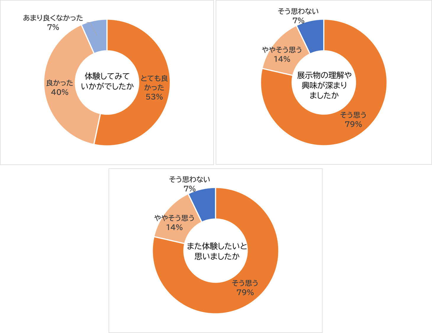 「体験してみてよかった」「展示物への理解が深まった」「また体験してみたい」等と多くの方から好意的な回答をいただきました。