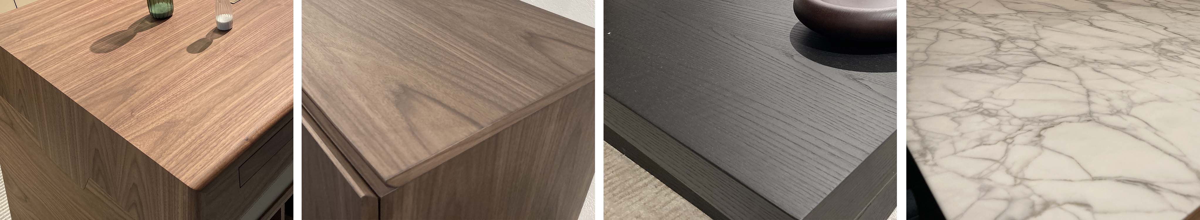 ウォールナット、サステナブル加工、オープンポア塗装、ホワイトカララ