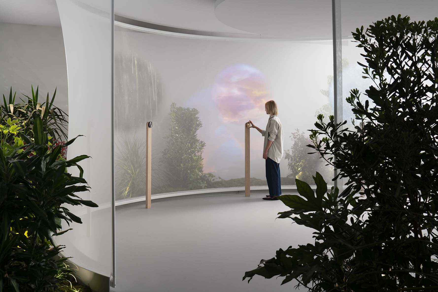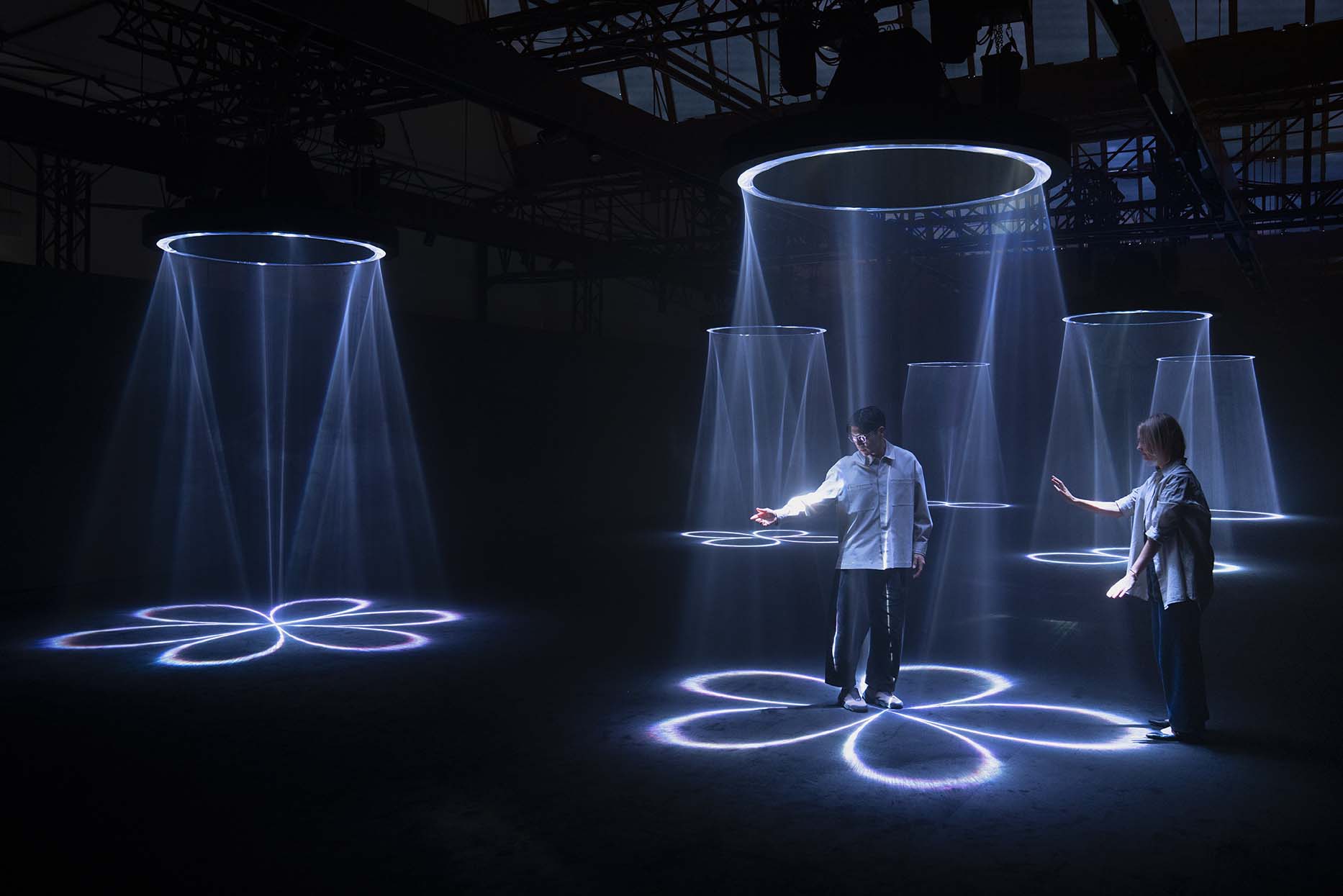 GoogleのデザイナーであるIvy RossとウォーターアーティストのLachlan Turczanとコラボレーションで実現したインスタレーション「Lucida (I–IV)」は、暗闇の中で、光と霧で構成されたベールが美しく広がり、有形と無形の境界を曖昧にします。また来場者の動きによってその形状が変化し、光のベールを触りながら動きや色の変化を感覚的に楽しめる没入型のインスタレーションでした。