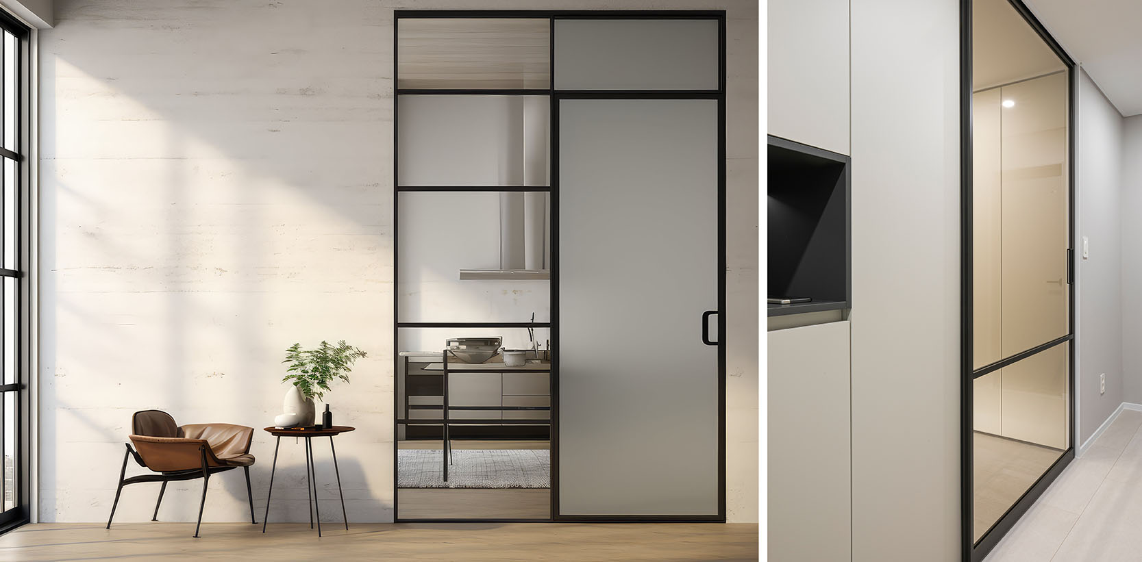 パンデミック以降、リビングの用途が多様化したことで、空間を小分けにするウォールドアの設置率が増えました。完全に間仕切ってしまうと空間が狭く感じてしまうという課題もあり、透過性のあるガラスなどを用いたウォールドアが多く見られました。空間をゆるやかに仕切りつつ、圧迫感を感じさせない設えです。モデルルームでは有償オプションの設定が多いと思いますが、モデルルームで体感するとオプション購入される方も多いのではないでしょうか。
