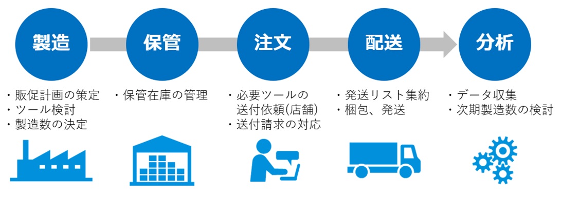 販促物管理の「製造」「保管」について販促物のサプライチェーンに沿って紹介いたしました。