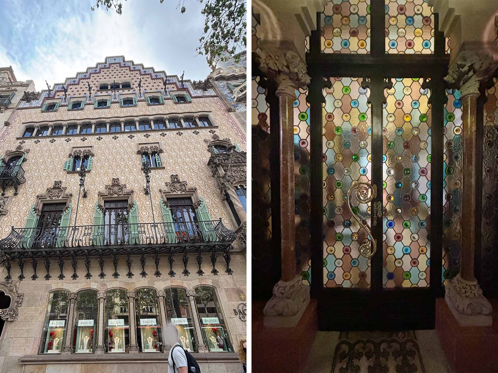 前編コラムの最後にご紹介するのは、カサ・アマトリエールです。ガウディが設計したカサ・バトリョの隣に位置しているため、観光地としての存在感はやや小さいのですが、外観はもちろんのこと内部のインテリアも見どころが沢山ある建築です。アマトリエールは1700年台に創業したチョコレートの老舗で、カサ・アマトリエールは3代目にあたるアントニ・アマトラーのため、ムンタネーの弟子であったプッチ・イ・カダファルクが設計をしました。階段状に切妻屋根で構成された特徴的な外観を持つフランドル・ゴシック様式の建築です。