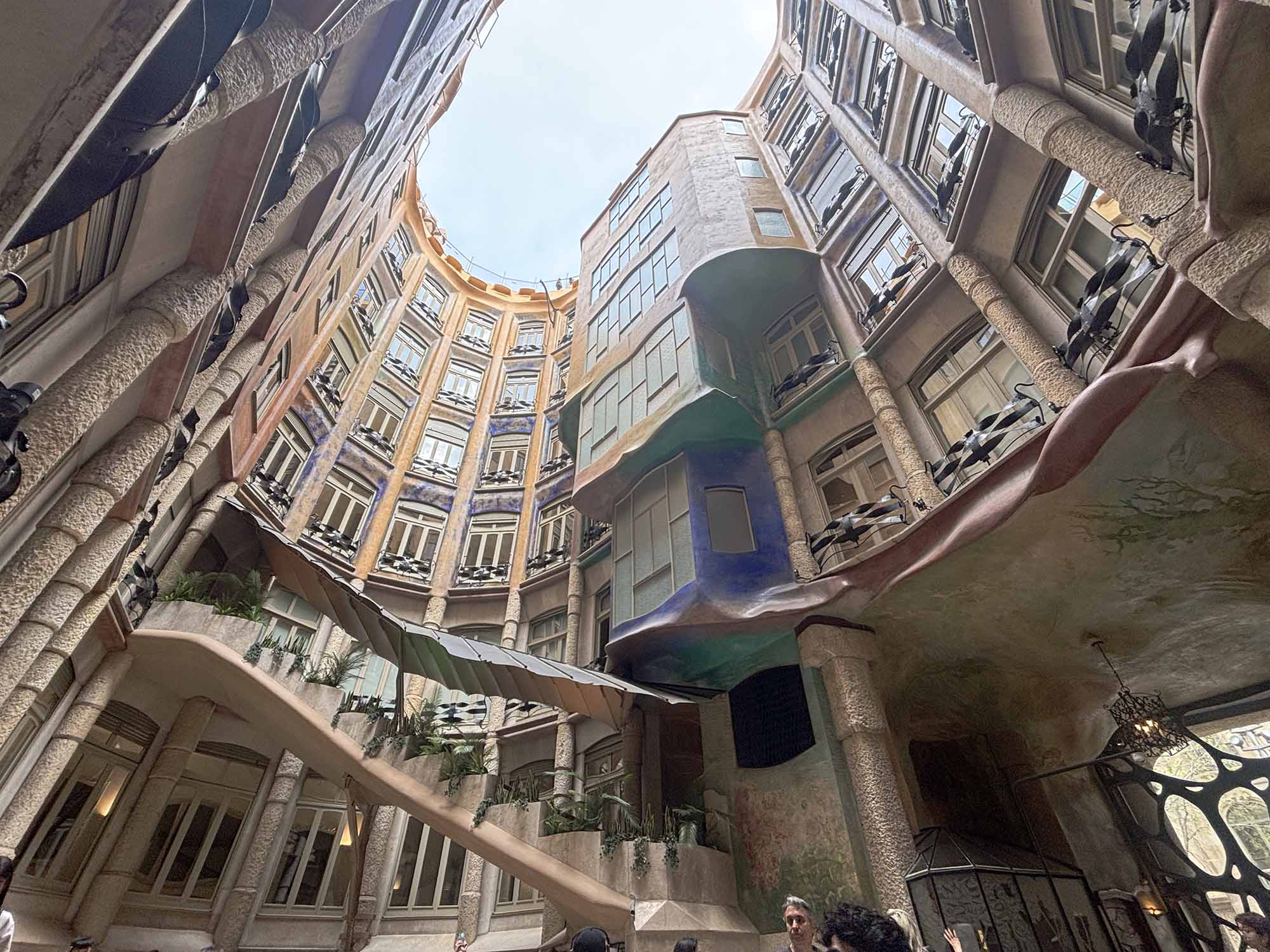 建物内部は吹き抜けになっていて、馬車や自動車がそのまま乗り入れられるよう設計されています。カサ・バトリョと同様に、光と風を効果的に取り入れるようパティオが2カ所設けられています。カサ・ミラは現在も一部住まいとして使用されており、住める世界遺産ともいわれています。