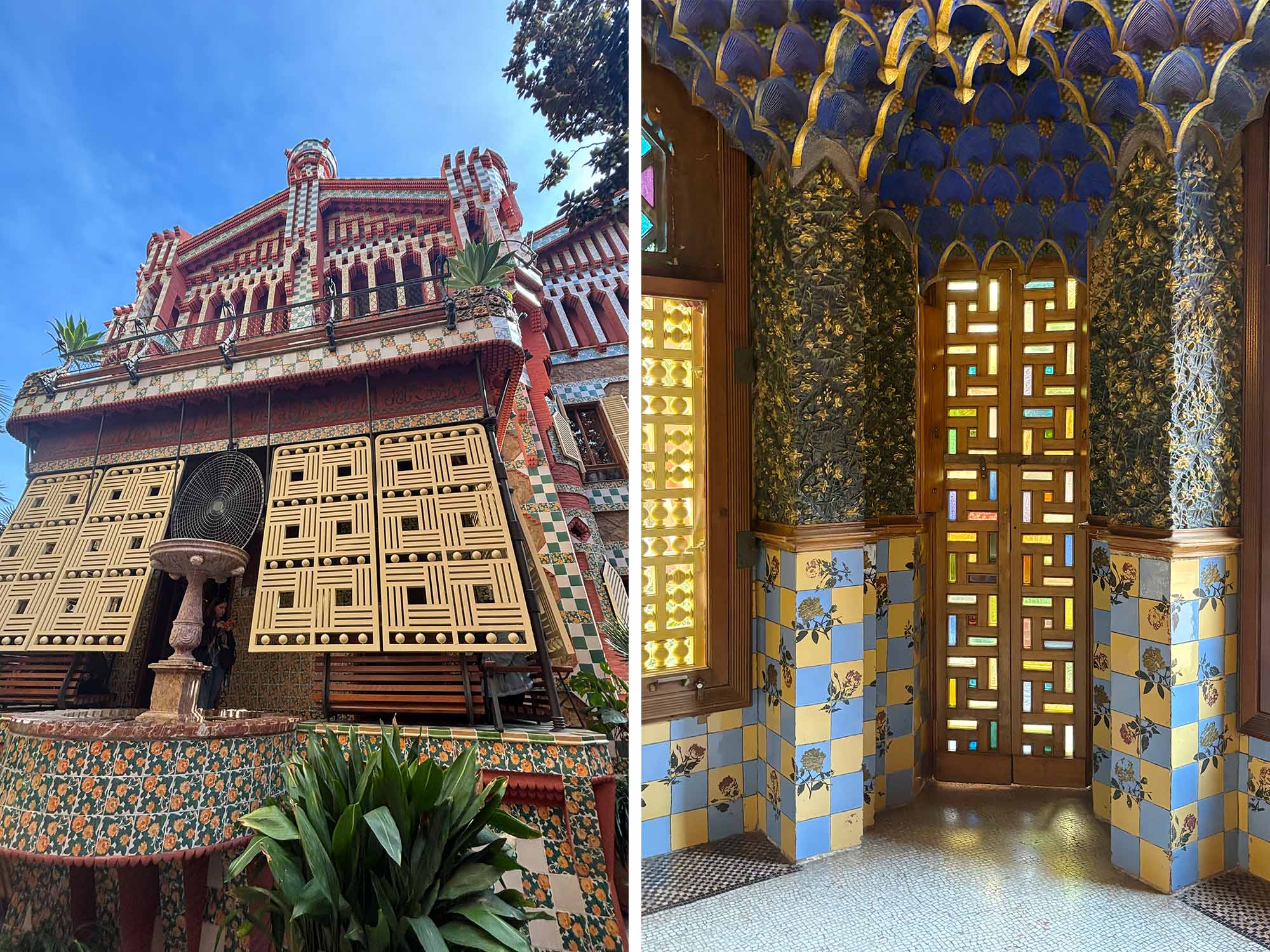 カサ・ビセンスはガウディが20代半ばで初めて手掛けた個人邸と言われています。イスラム建築とキリスト教建築が融合したムデハル様式を取り入れていて、ほかガウディ作品とは異なる華やかさを持ち合わせた建築になっています。