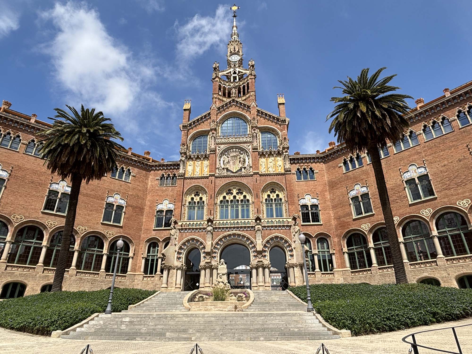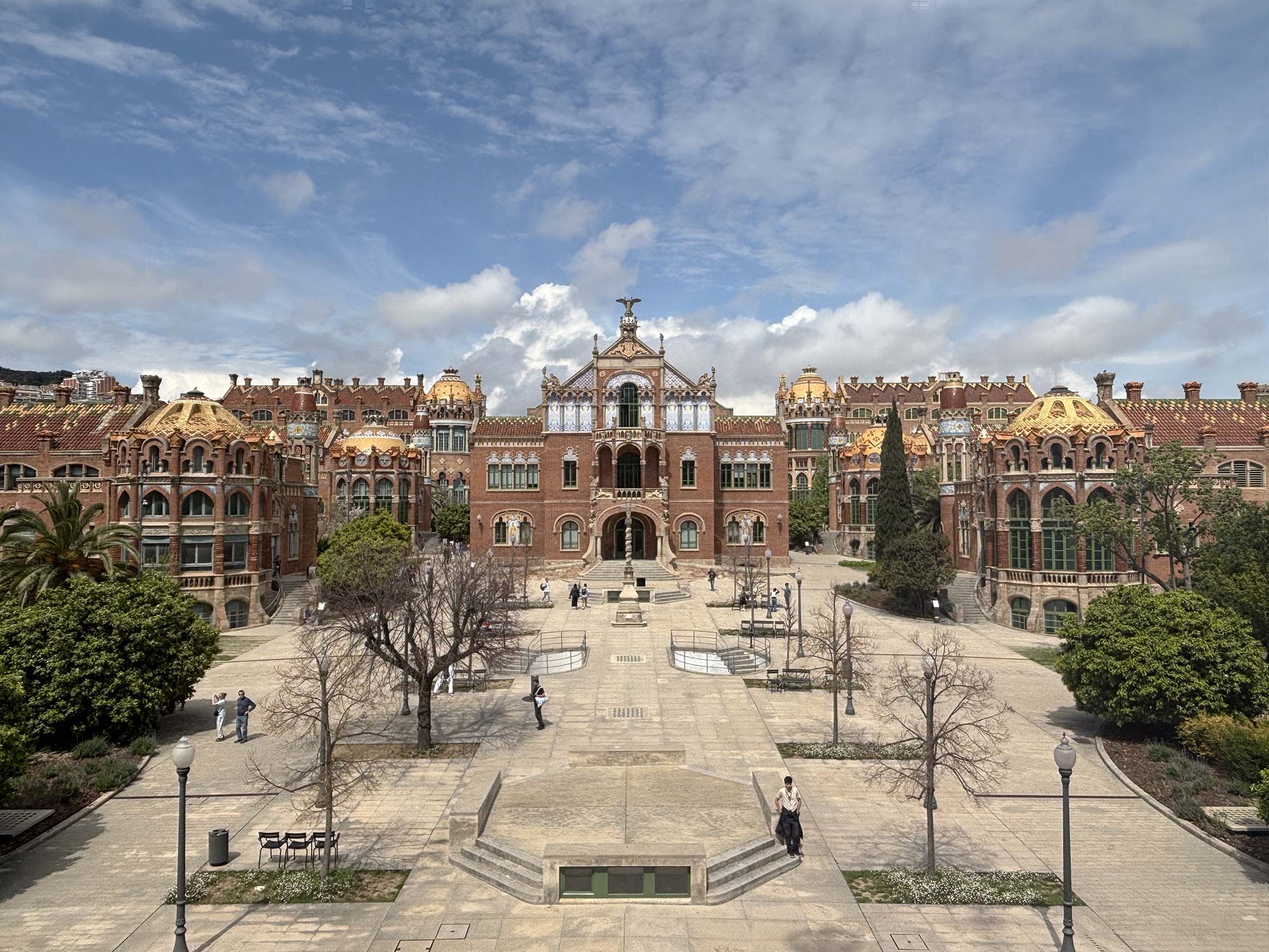 サン・パウ病院は、銀行家パウ・ジル・イ・セラの遺言と遺産によって1900年代前半に建設された病院です。当時近隣には複数の小さな病院がありましたが、患者の増加や医療の進歩により、それらを統合した大きな病院として構想されました。ムンタネーが設計した建物は、アール・ヌーヴォー様式の影響を受け、カタルーニャの自然の要素を取り入れたムダルニズマ様式の建築です。1997年にユネスコ世界遺産に登録され、2009年には医療機能を近隣の新しい建築物に移管し、病院としての役割を終えています。