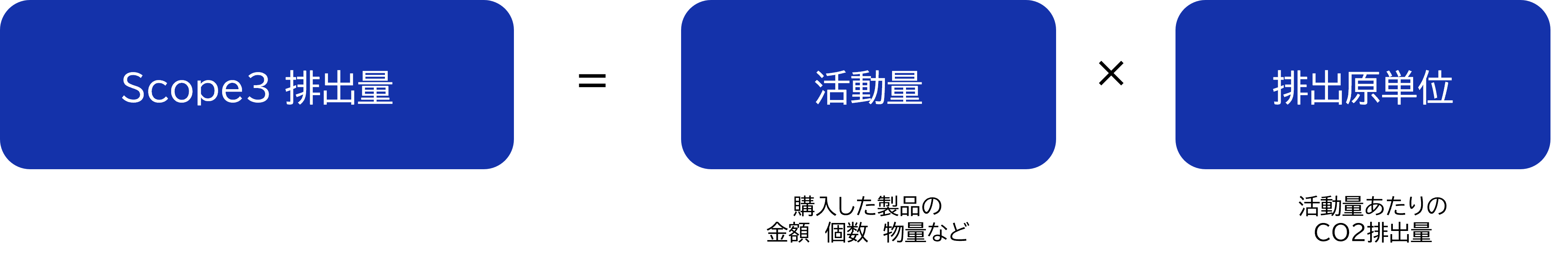 現状では、多くの企業が購入金額(円)を活動量とし、2次データ(国や業界が公表する平均値)の排出原単位を用いて算定しています。