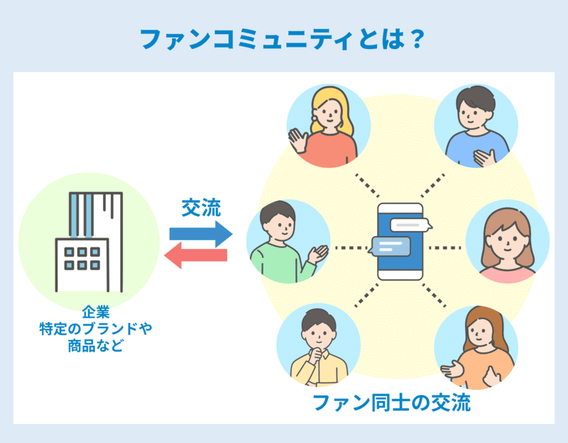 ファンコミュニティとは、特定のブランド・商品を提供する企業がそのファンと双方向で交流したり、ファン同士が集まって相互に交流を深めたりする場のことです。