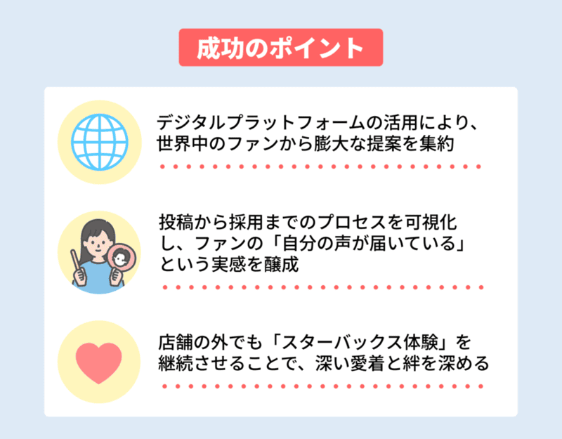 スターバックスは、業績不振に苦しんでいた2008年に、オンラインコミュニティ「My Starbucks Idea」を立ち上げました。