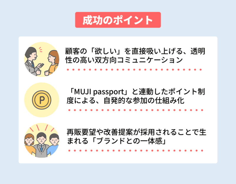 また、「MUJI passport」と連動したポイント付与の仕組みにより、継続的な参加を促進しています。