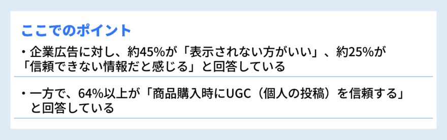 「企業発信の広告」への不信感が根底にある