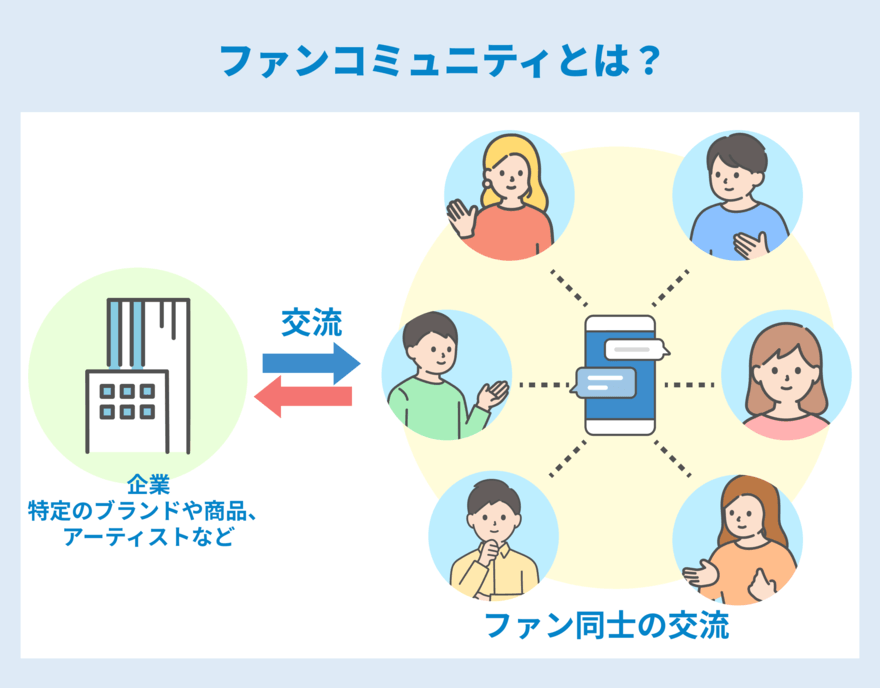 ファンコミュニティとは、特定のブランド・商品を提供する企業やアーティストがそのファンと双方向で交流したり、ファン同士が集まって相互に交流を深めたりする場のことです。