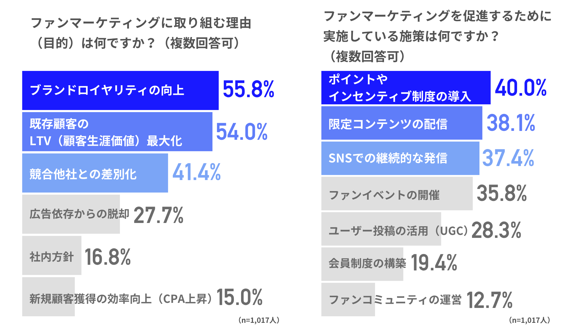 また、「体験会」などの対面施策も上位に挙がっており、直接的なコミュニケーションを通じてファンとの関係を深めようとする取り組みもうかがえます。
