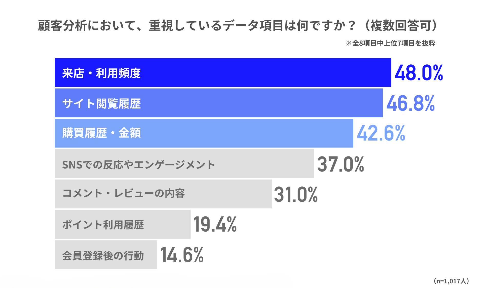 顧客分析で重要視しているデータは「来店・利用頻度」「サイト閲覧履歴」