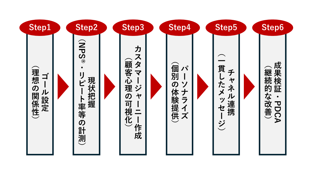 顧客エンゲージメントは、一朝一夕で高められるものではありません。段階的かつ計画的に取り組むことで、はじめて持続的な関係性が築かれます。