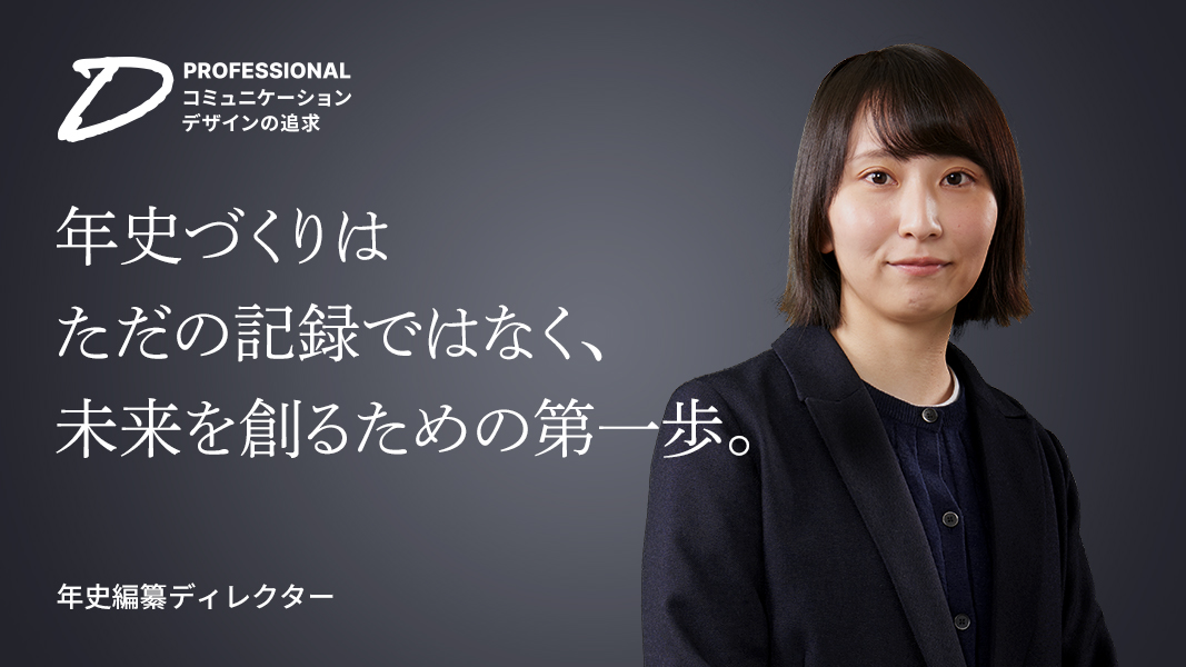 DNPコミュニケーションデザインでは、企画・制作における、多くのコミュニケーションのプロが活躍しています。そうしたプロフェッショナルたちにスポットライトを当てる企画、題して「DーProfessional」。今回は「年史編纂」にフォーカスし、前職で編集の経験を積み、現在はさまざまな企業の年史づくりを手掛けるプロに聞きました。- コーポレートコミュニケーション