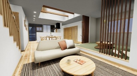 VRプレゼンゲートウェイ メタバース版は、住宅用プレゼンテーションソフトのデータをクラウド環境のAWS(Amazon Web Services)を活用して最短15秒※1で高精細なVRに変換、自由にウォークスルーできるソフトウエアです。 |