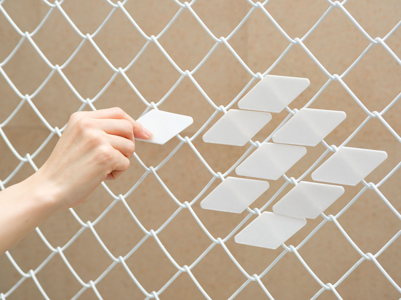 展示期間中、来場者はカラフルな「ひし形の加飾パーツ」に将来の夢や大阪・関西万博へのメッセージを書いてネットフェンスに取り付けることで、自らの思いを他の来場者に共有しながら、身の回りにある景観や空間を自分たちの手で共同制作する体験ができます。公園にあるネットフェンスを地域コミュニティの起点とした「人と人が緩やかにつながる未来社会」の実現に取り組んでいきます。
