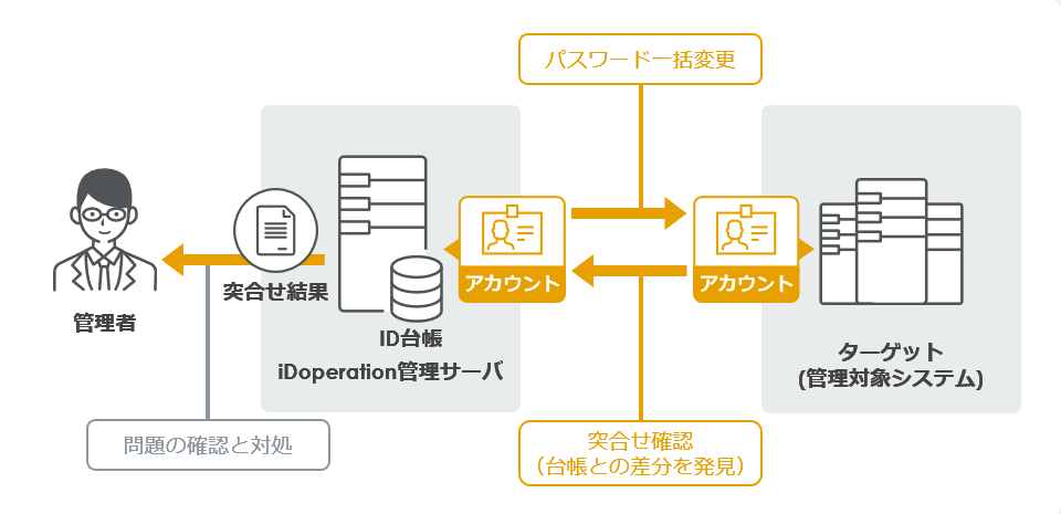 定期的なパスワード変更や、アカウントの突合せ点検など、管理者の作業を自動化します。