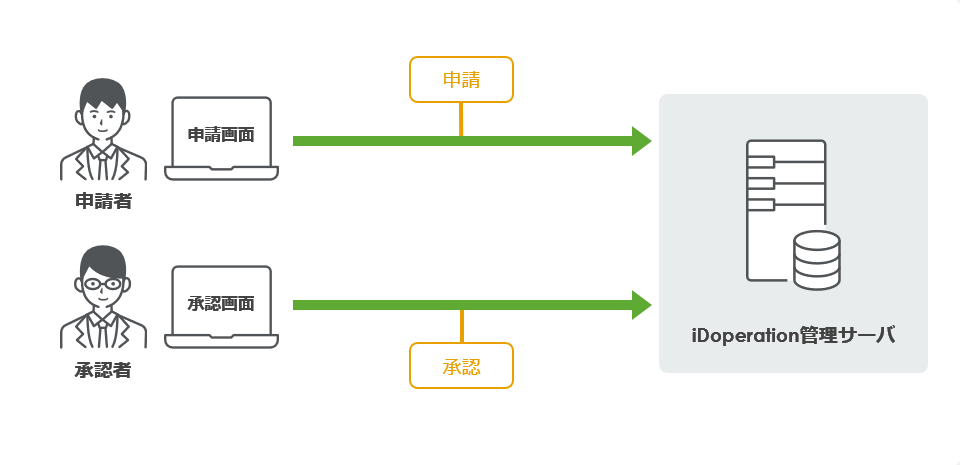 特権IDを利用する特権ユーザーは、iDoperationのワークフローで利用期間、利用目的、作業内容、利用する特権IDを明確にして申請します。