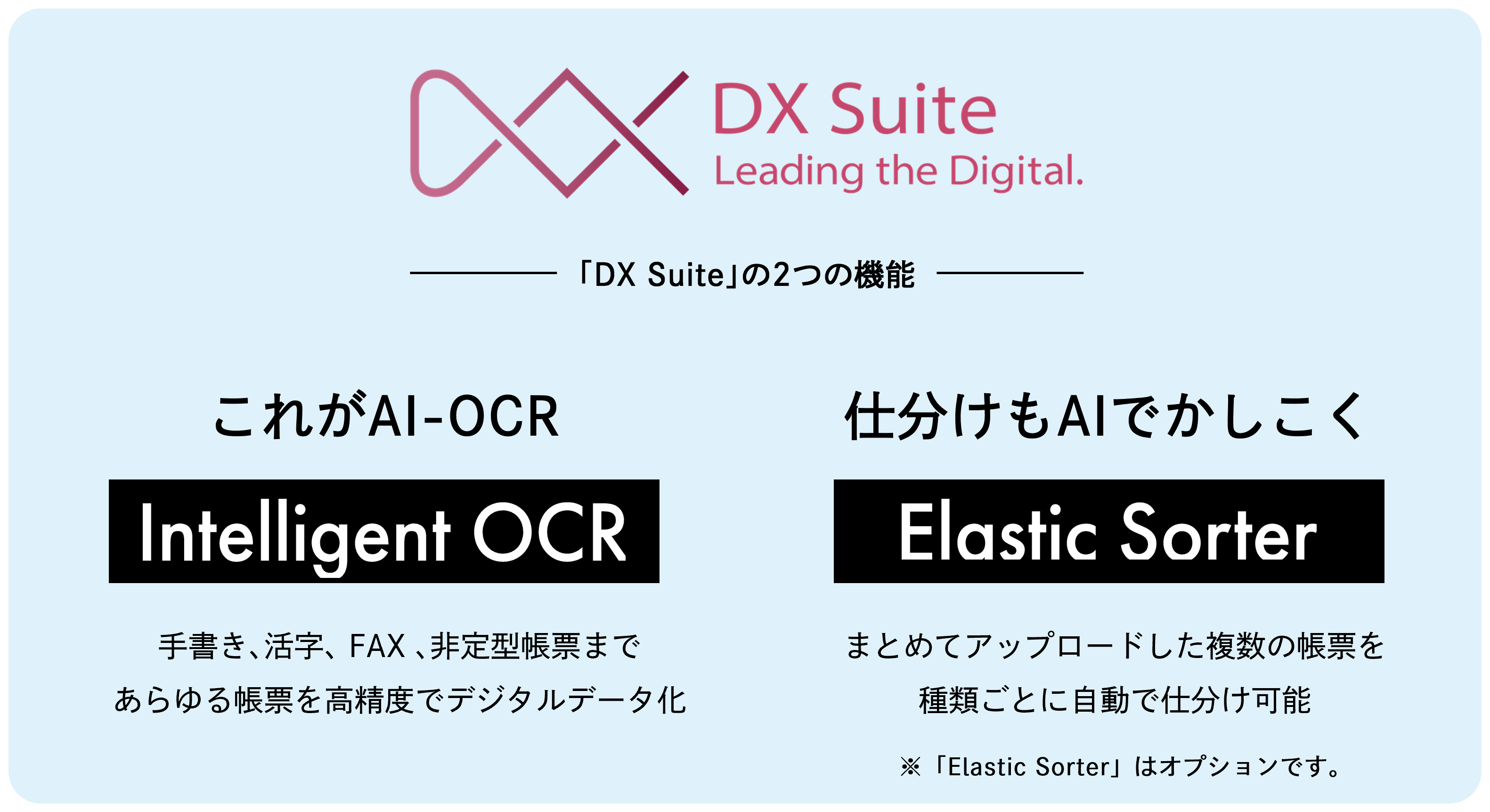 ※「DX Suite」「Intelligent OCR」「Elastic Sorter」「AI inside」は、AI inside 株式会社の登録商標です。