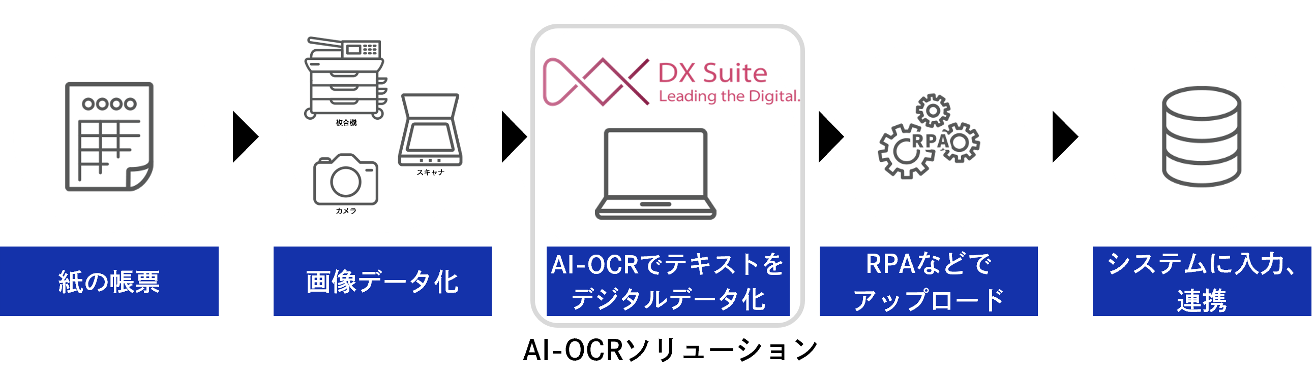 AI-OCRソリューションは紙面・画像に記載された文字・文章をテキストデータへ変換するサービスです。
