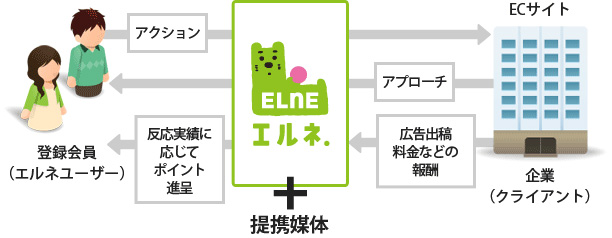 インターネット無料ポイントサービスの運営、「エルネ」を活用したマーケティング事業および、そこから派生する各種ソリューションを開発・提供しております。