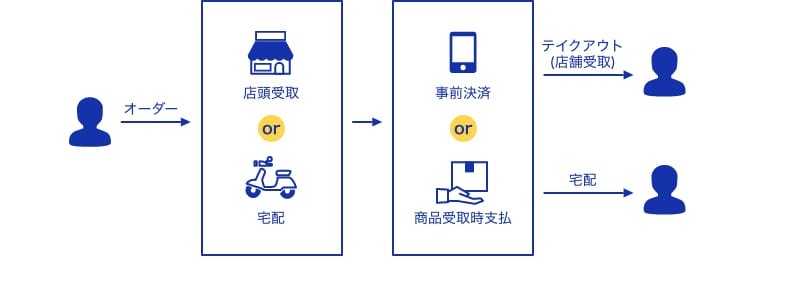 スムーズな注文処理を実現します。「テイクアウト/デリバリー」どちらかの受け取り方法をお客様にて選択可能です。