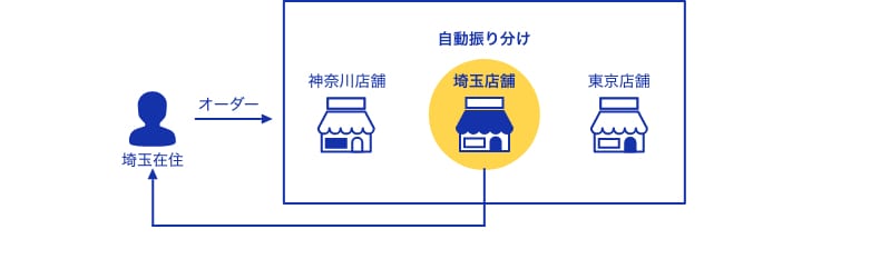 店舗の商圏に応じた配送エリア設定が可能です。店舗ごとに配送エリアを設定することで住所に合わせてご利用店舗を自動振り分けいたします。