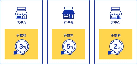 店子ごとに異なる手数料を設定することが可能です。店子の売上規模に応じた手数料を設定したり、一律の手数料を設定したりと、提供するモールの方針に応じて手数料を管理いただけます。