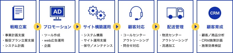 ECシステムの構築・運用だけでなく、通販事業に必要な機能を全て提供。