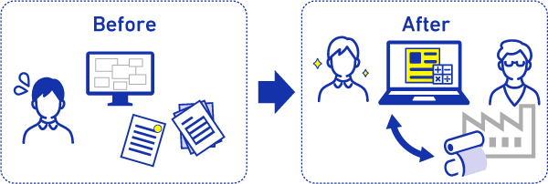 - 情報集約業務を効率化するだけでなく、必要数量のみを製造することで制作コストを最適化し、無駄な廃棄を削減