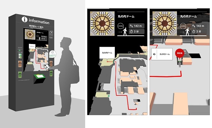 本システムを組み込んだ駅構内案内用のデジタルサイネージをJR東日本様と共同開発し、2015年7月~8月にJR東京駅構内に4台を設置した実証実験を行うほか、国際会議の会場案内にもご利用いただいています。