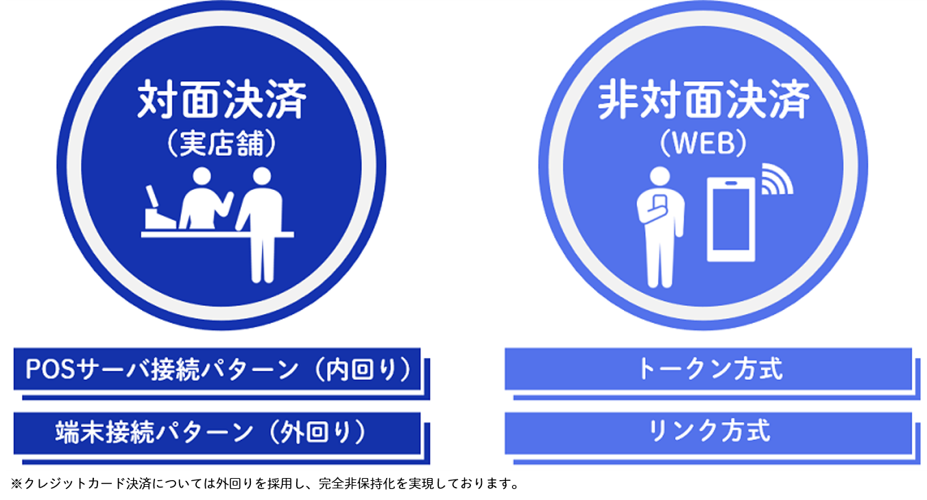 DNPマルチペイメントサービスは対面決済(実店舗)でも非対面決済(WEB)でも利用できます。