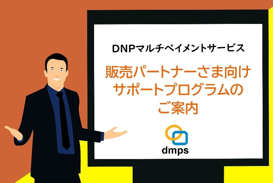DNPマルチペイメントサービスを販売いただく、POS・自動機の取り扱い企業さま、決済製品の取り扱い企業さま向けに、販売パートナー制度をご用意しております。販売パートナーさまの営業活動・販売活動をサポートするための各種支援制度です。→詳しくはこちら