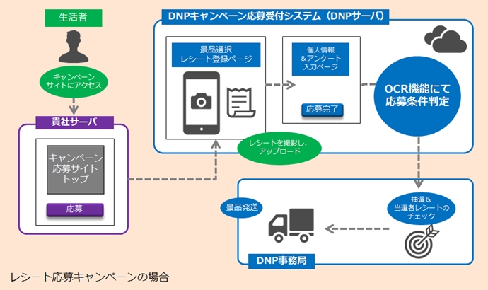流通・メーカーを対象にキャンペーン応募サイトを短期間で導入可能なサービスです。マストバイキャンペーン(レシート応募)及びオープンキャンペーンに対応します。レシート応募では、OCR解析機能※により、撮影したレシートの応募条件(対象商品や期間など)を自動で判定することが可能です。※OCR(Optical Character Recognition):光学的文字認識。画像を解析し、文字認識する技術