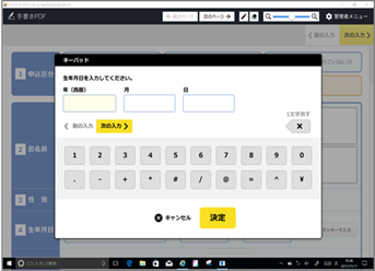 生年月日、電話番号など、数字のみの入力は、キーパッドから入力できます。