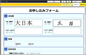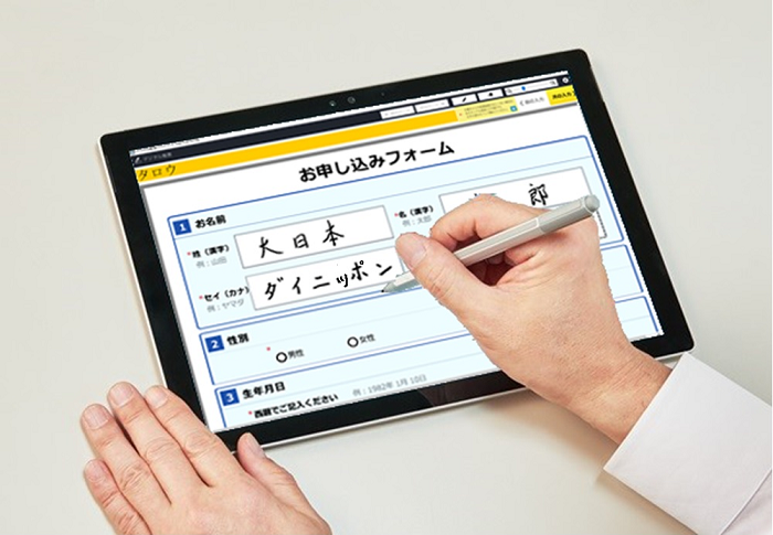 氏名などの文字入力は、幅広い年齢層で抵抗のない手書き入力に対応しています。