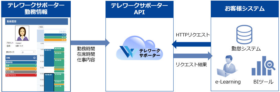 WebAPIを利用することで、各種システムにテレワークサポーターの情報を連携することができます。