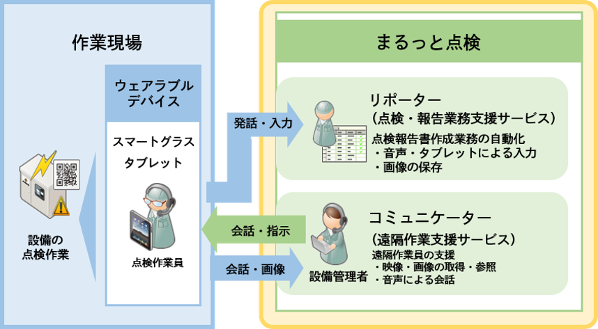 まるっと点検サービスは、スマートグラスとタブレットを活用した遠隔作業支援ソリューションです。