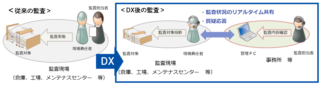 遠隔コミュニケーションツール(まるっと点検サービス)を活用し、監査を非対面で実施することにより、監査業務をDX。