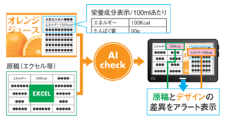 Excelファイル等で作成した栄養成分表示などの原稿とデザイン案を比較して、差異を判定。