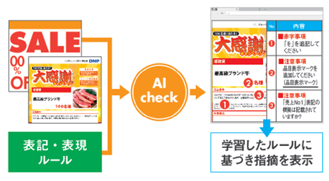 表記・表現等のレギュレーションルールや注釈文言などをAIに学習させ、ルールにのっとっているかをAIが判定。