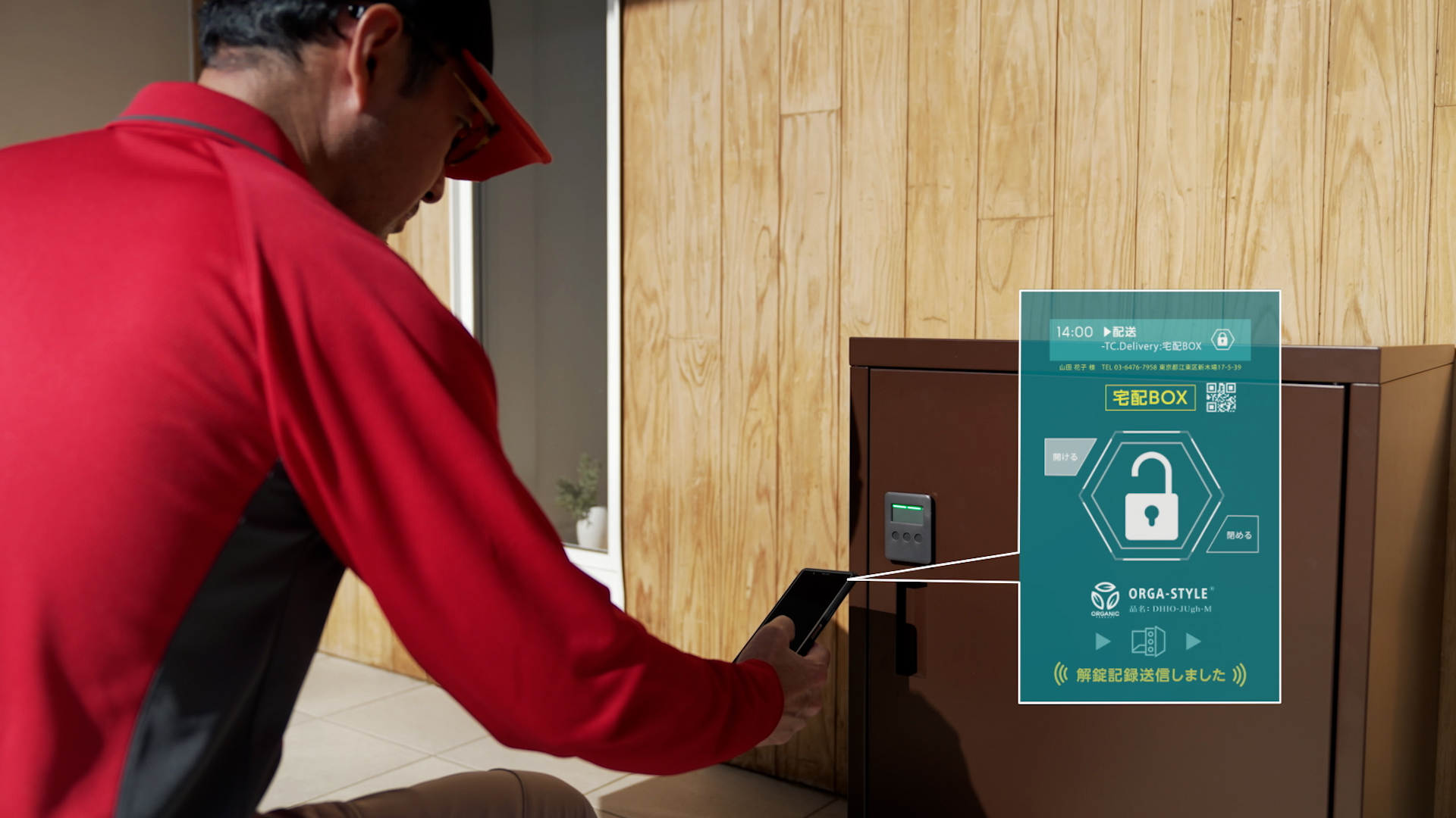店頭受取サービスでスマホを操作して開錠するシーン |