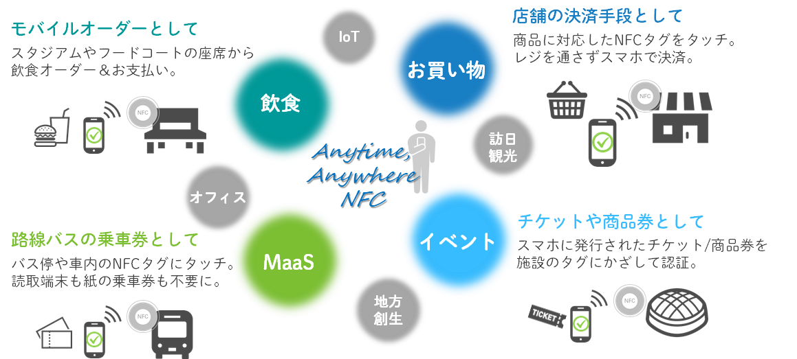 NFCは、Androidに加えて、iPhoneでも2019年にリーダー/ライターモードが開放され、NFCタグへの読み書きが可能になるなど、スマートフォンを持つより多くの生活者が幅広いNFCサービスを利用できる環境が整いはじめています。