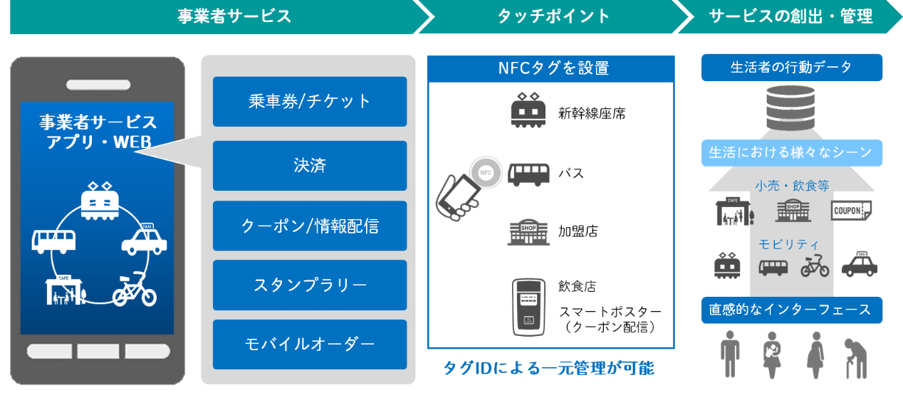 NFCタグをタッチするだけで、シーンに応じたサービスをセキュアかつシームレスに実現できます。