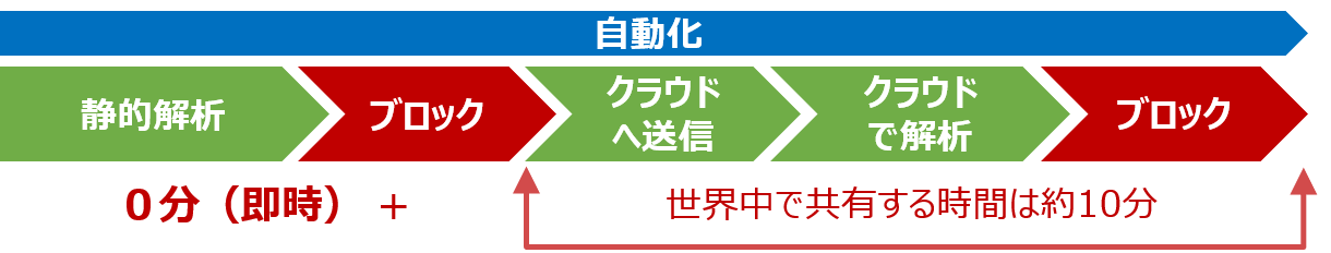 自動化および世界中で共有することによって、より早い防御を実現 |