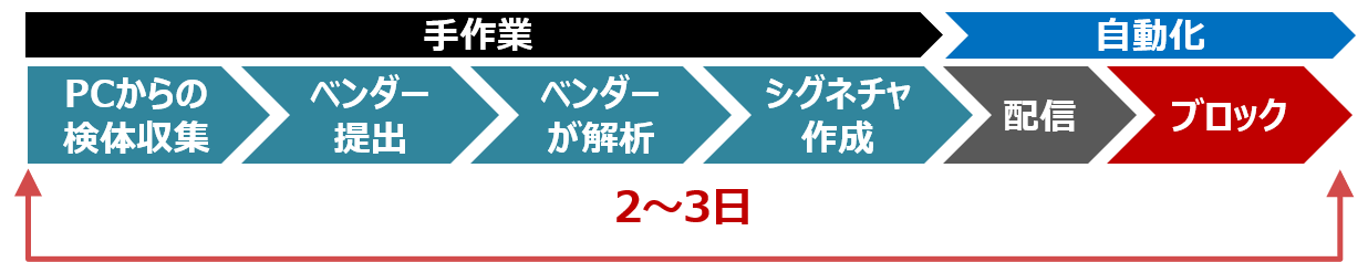 手動のプロセスが多いため、シグネチャ配信までの間に感染... |
