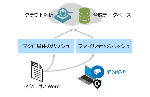 Cortex XDRは、不正な呼び出され方をしたプロセスを、ファイルレスマルウェアとして判定し防御します。また、ファイルに付属しているマクロ単体でもハッシュ値を取得・参照し、不正なマクロをブロックします。