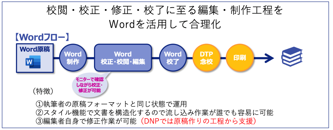 上記のステップはすべてDNPが行い、その後は編集者と著者が、Wordデータで校正・校閲を行うことが可能になります。